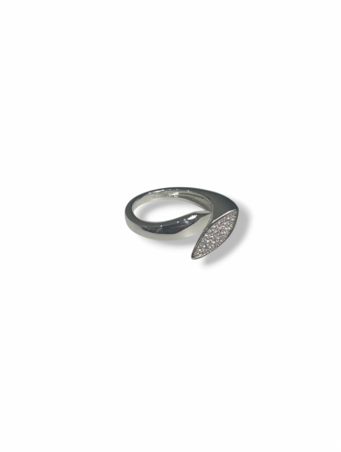 Anello donna Essesteel jewels contrarie' cristalli, montatura in bronzo placcato oro bianco 18 kt, pave' a forma di navetta con cristalli bianchi incastonati, misura 15, confezione inclusa.