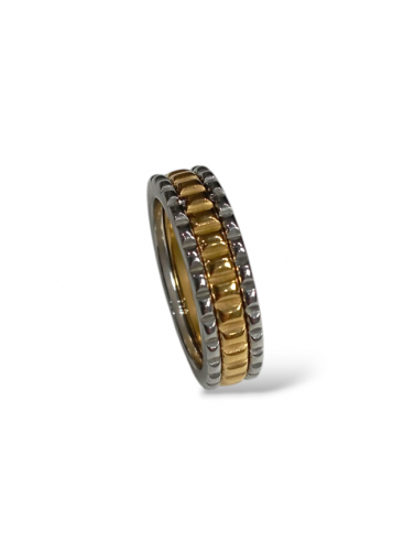 Anello uomo Anyca gioielli in acciaio bicolore placcato oro 18 kt, lavorazione tipo ingranaggio com