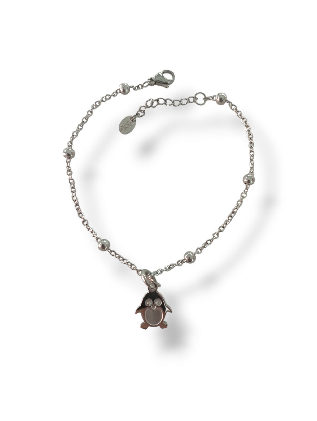 Bracciale ciondolo pinguino Brand gioielli, catena e pendente in acciaio 316l anallergico, ciondolo a forma di pinguino, chiusura a moschettone, confezione inclusa.