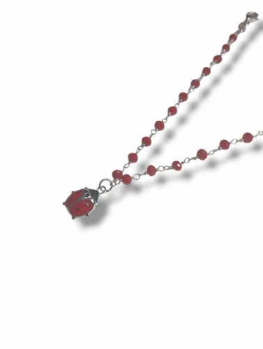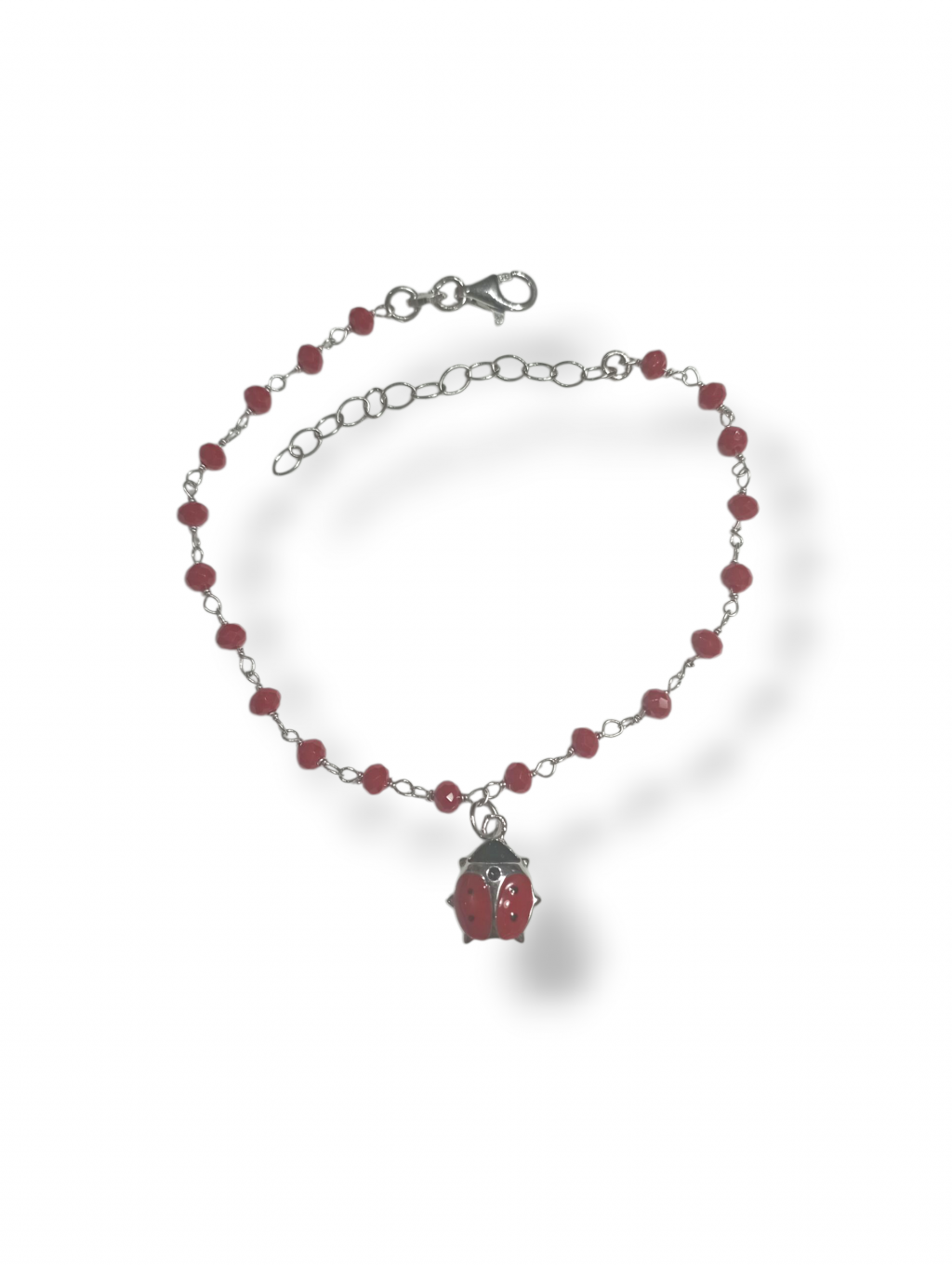 Bracciale argento Monnalisa jewels coccinella, catena in argento 925 placcata oro bianco 18 kt con intermezzi in cristallo rosso, ciondolo centrale coccinella in argento con smalti rosso e neri, lunghezza bracciale 16/20 con regolatore a catena, chiusura a moschettone, confezione inclusa.