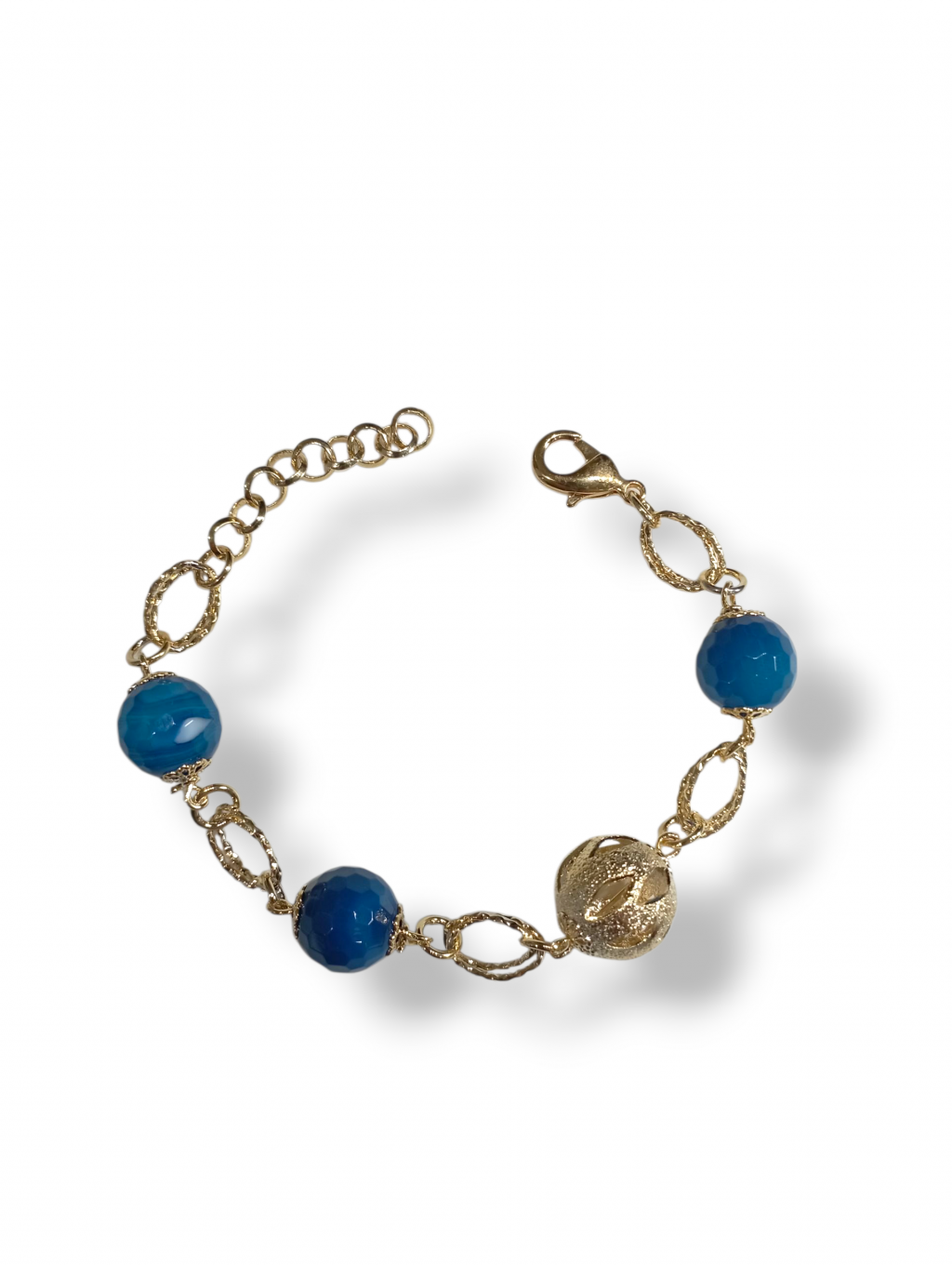 Bracciale donna topazio blu I Think jewels, catena e sfera in bronzo placcato oro giallo 18 kt, pietre sfere topazio blu London sfaccettato misura 10 mm, lunghezza bracciale 18/21 cm regolabile tramite regolatore a catena incluso, chiusura a moschettone, confezione inclusa.