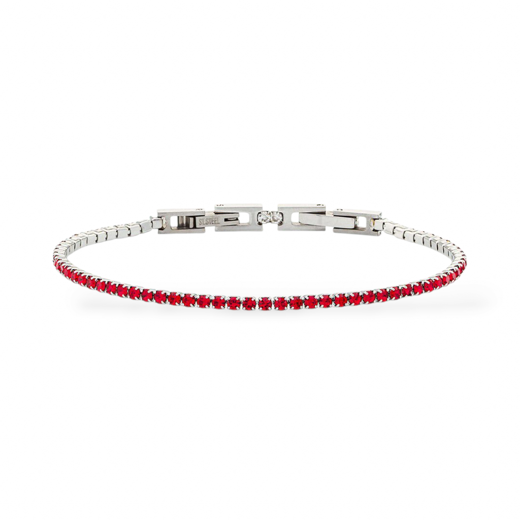 Bracciale tennis cristalli rossi Anyca jewels, bracciale in acciaio 316l inossidabile e cristalli rossi incastonati misura 2 mm, chiusura a scatto, lunghezza bracciale 17/19,50 cm regolabile tramite regolatore incluso, confezione inclusa.