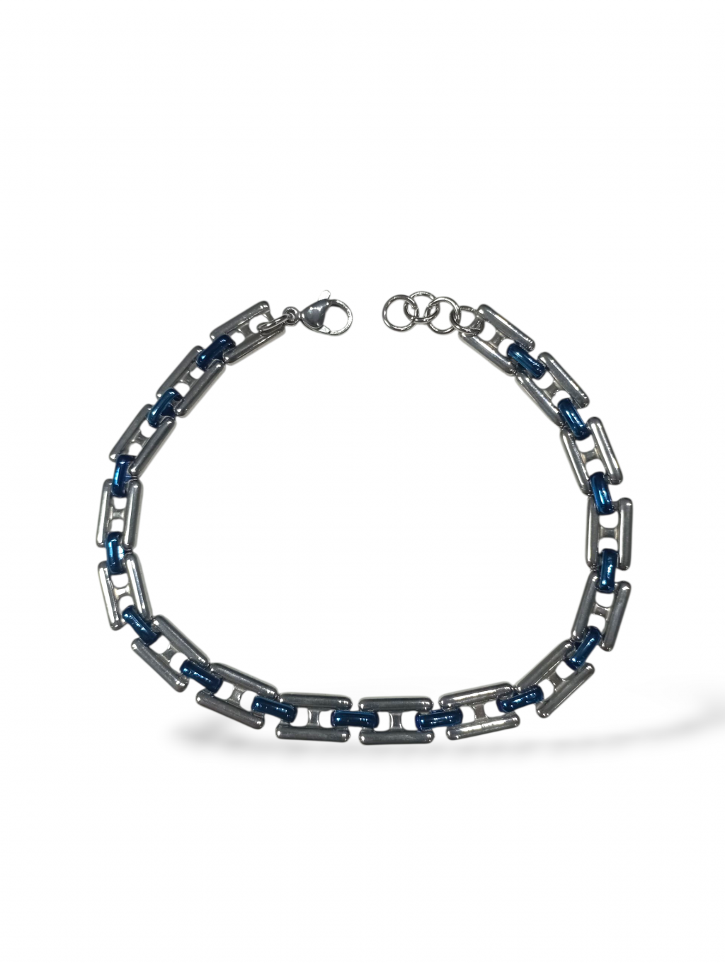 Bracciale uomo bicolore blu Anyca jewels, catena in acciaio 316l con maglie rettangolari alternate a maglie ovali in acciaio ip blu, chiusura a moschettone, lunghezza bracciale 20/22 cm regolabile con regolatore a catena incluso, confezione inclusa.