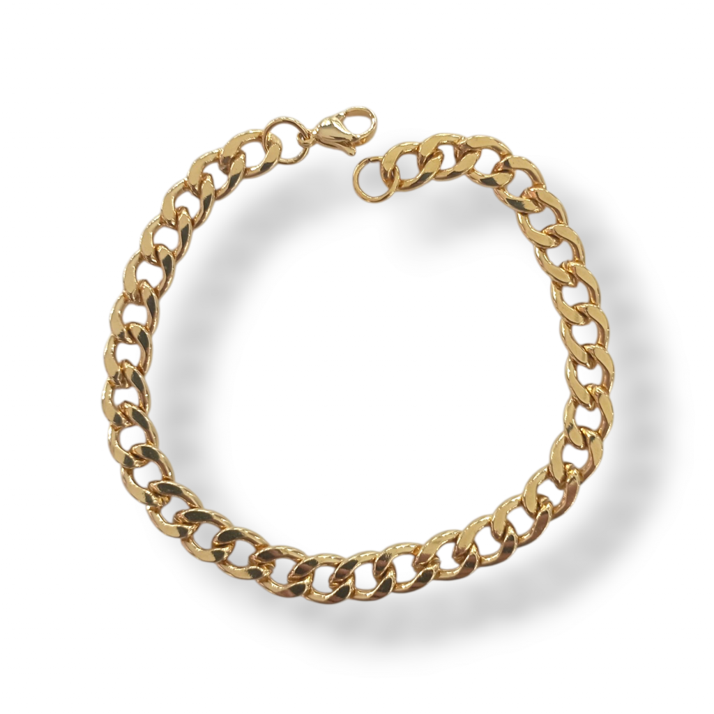 Bracciale uomo catena ovale Anyca jewels, catena in acciaio 316 l inossidabile Placcato oro 18 kt, larghezza maglia 7 mm, lunghezza bracciale 20,50 cm, chiusura a moschettone, confezione inclusa.
