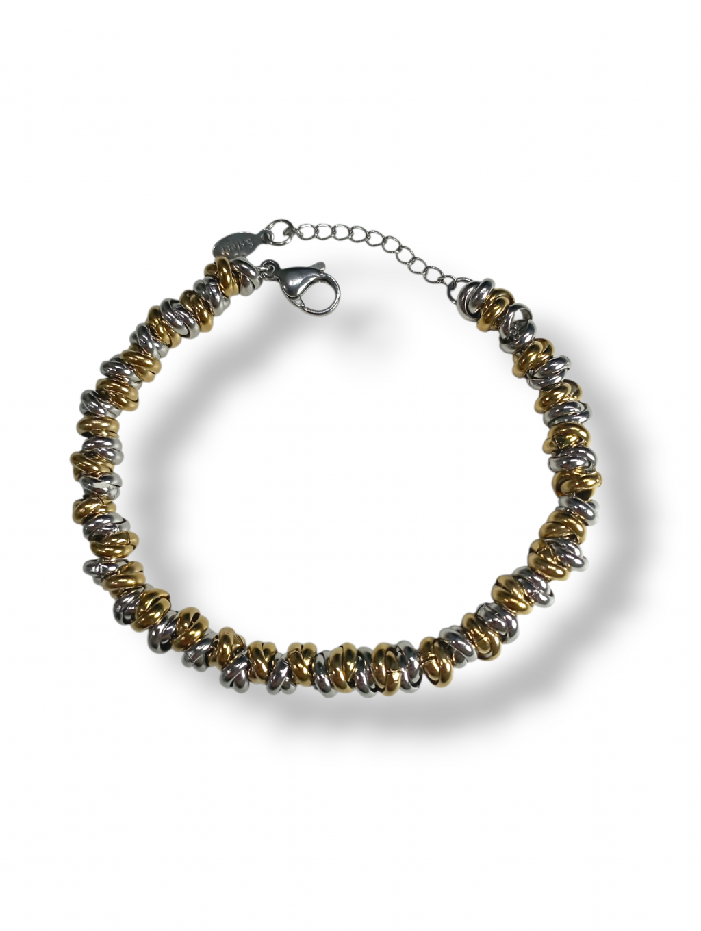 Bracciale uomo rondelle Anyca jewels, catena e rondelle in acciaio bicolore placcato oro 18 kt, chiusura a moschettone, misura 18/22 cm regolabile con regolatore a catena incluso, confezione inclusa.