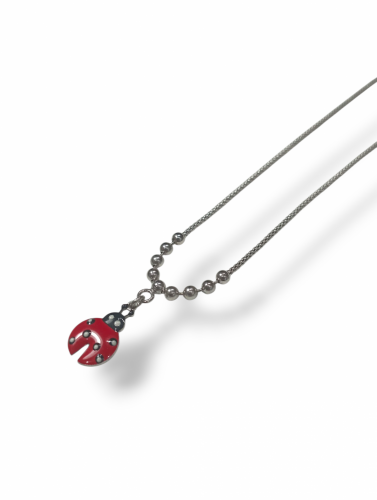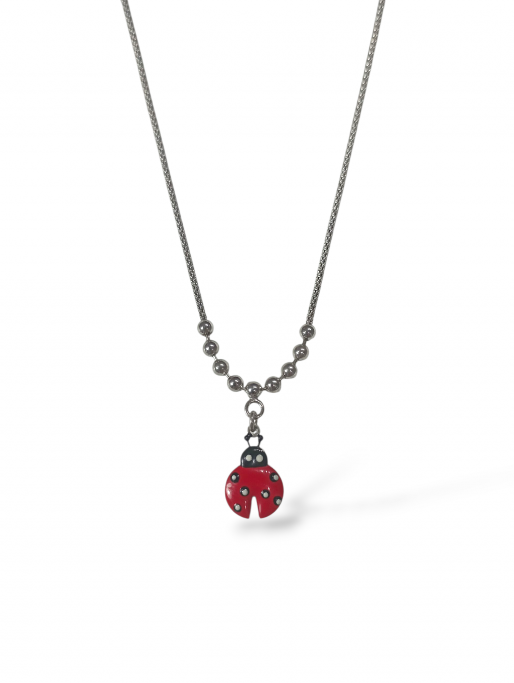 Collana argento Monnalisa jewels coccinella collezione bimbi monelli,collana in argento 925 placcata oro bianco 18kt, pendente a forma di coccinella smaltata rosso e nera, lunghezza coccinella 1,5 cm