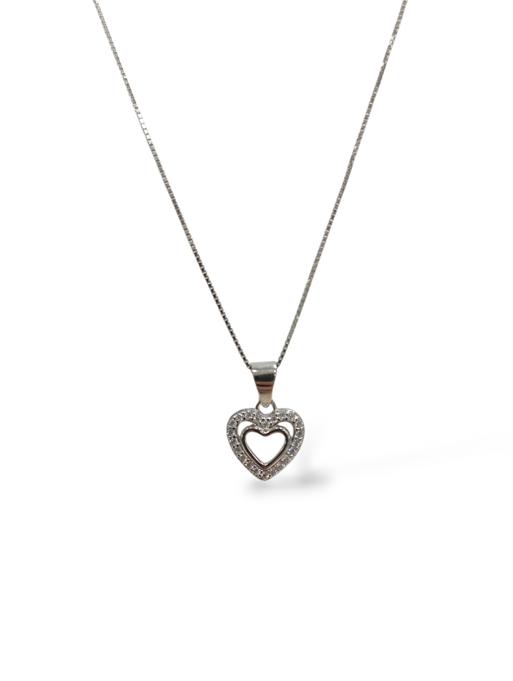 Collana donna cuore argento Monnalisa jewels, catenina veneziana con pendente a forma di cuore in argento 925 placcato oro bianco 18 kt, ciondolo cuore traforato con contorno di cristalli bianchi, larghezza cuore 11 mm, lunghezza collana 40 cm, confezione inclusa.