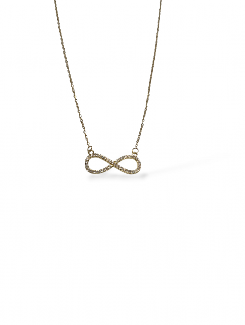 Collana donna infinito Anyca jewels, catena con centrale a forma di infinito in acciaio 316l Placcato oro giallo 18 kt, infinito largo 27 mm con cristalli bianchi incastonati, lunghezza collana 40/48 cm regolabile tramite regolatore a catena incluso, confezione inclusa.