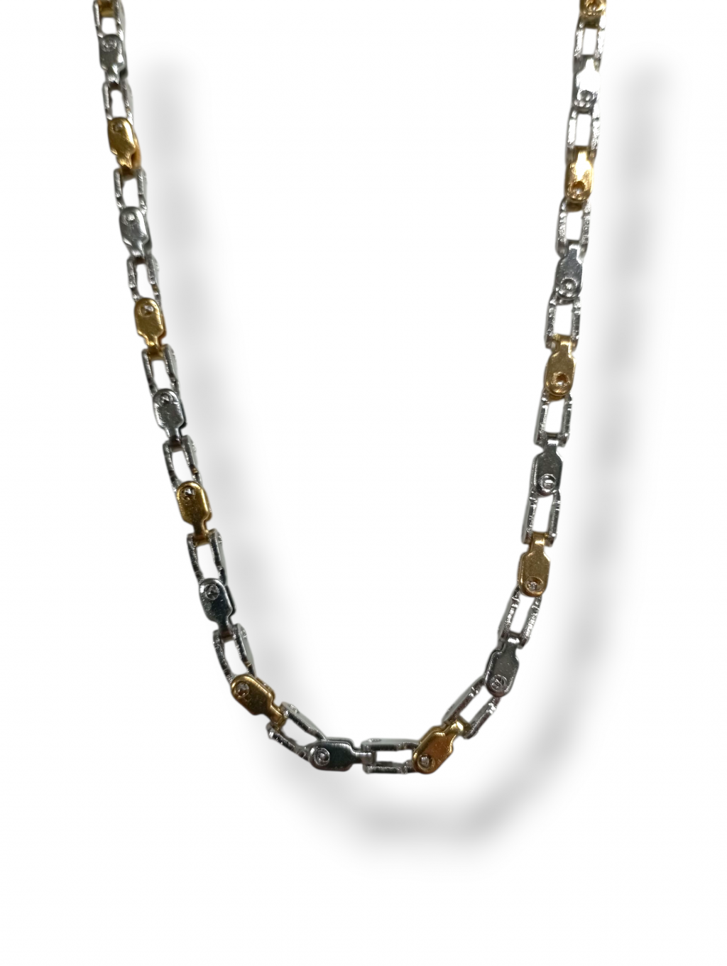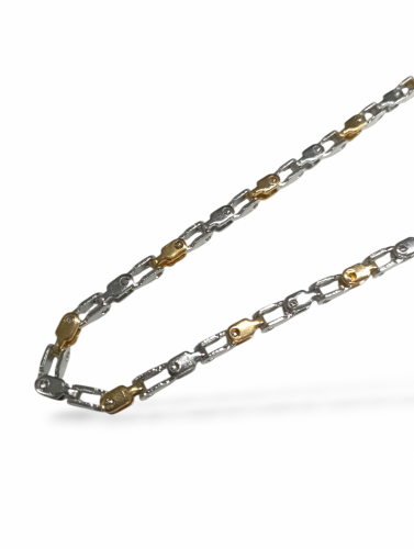 Collana uomo Anyca jewels bicolore, catena in acciaio a maglie alternate colore argento e oro, lunghezza collana 55 cm, confezione inclusa.