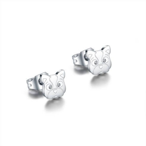 Orecchini Brand gioielli cagnolino 05ER009, acciaio 316 l anallergico, Chiusura con farfallina, cristalli bianchi