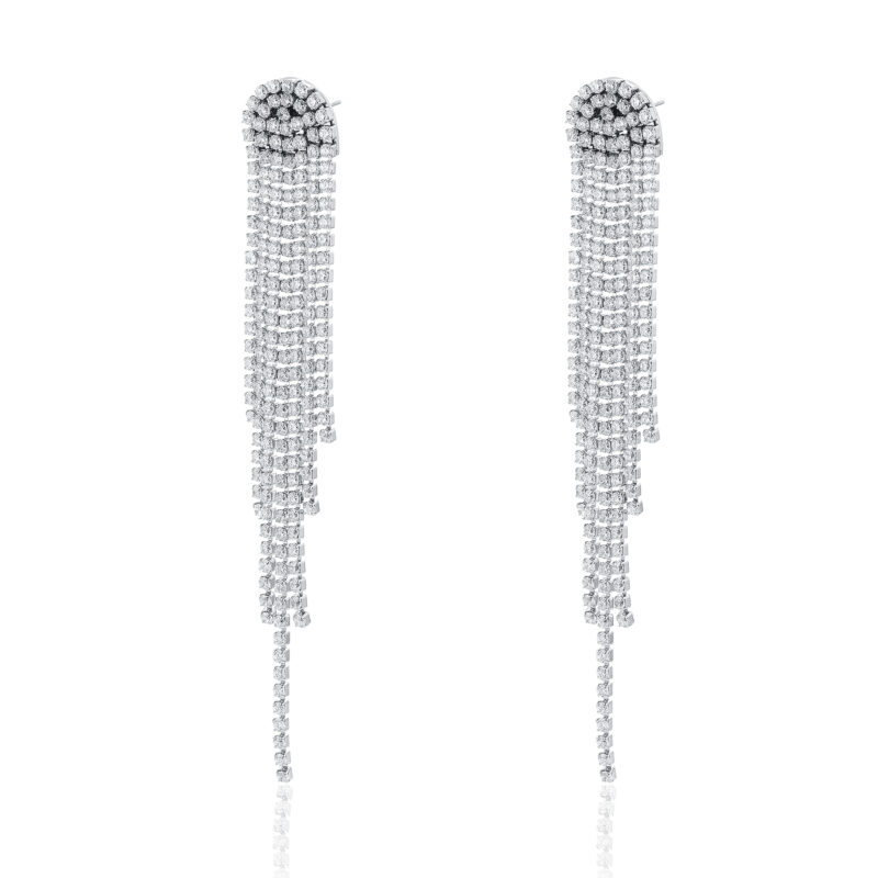 Orecchini Brand gioielli 14ER025W tennis pendenti cupola, acciaio inossidabile con cristalli bianchi di 2 mm