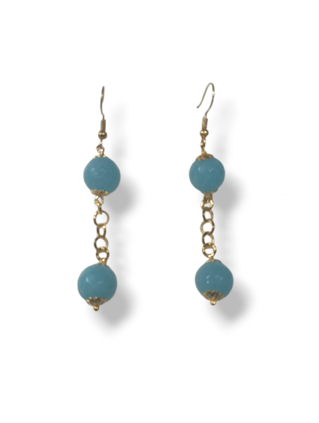 Orecchini I Think jewels prasiolite, catena e chiusure ad arco in bronzo placcato oron18 kt, pietre prasiolite sfaccettata di 10 mm, lunghezza orecchini 7 cm, confezione inclusa.