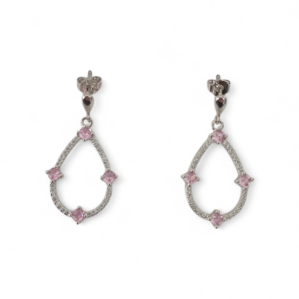 Orecchini For You jewels E26110, pendenti a forma di goccia in ottone Placcato oro bianco 18 kt, cristalli bianchi e rosa incastonati, lunghezza orecchino cm 3, chiusura a farfalla, confezione inclusa.