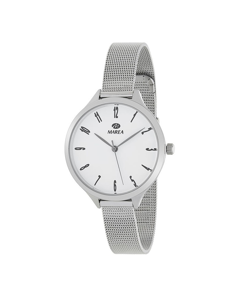 Orologio donna Marea B41232/2, movimento al quarzo, cassa e cinturino in acciaio inox, chiusura a scatto, cinturino Milano regolabile, quadrante bianco con numeri silver, cassa diametro 36 mm, water resistant, confezione inclusa, 2 anni di garanzia.