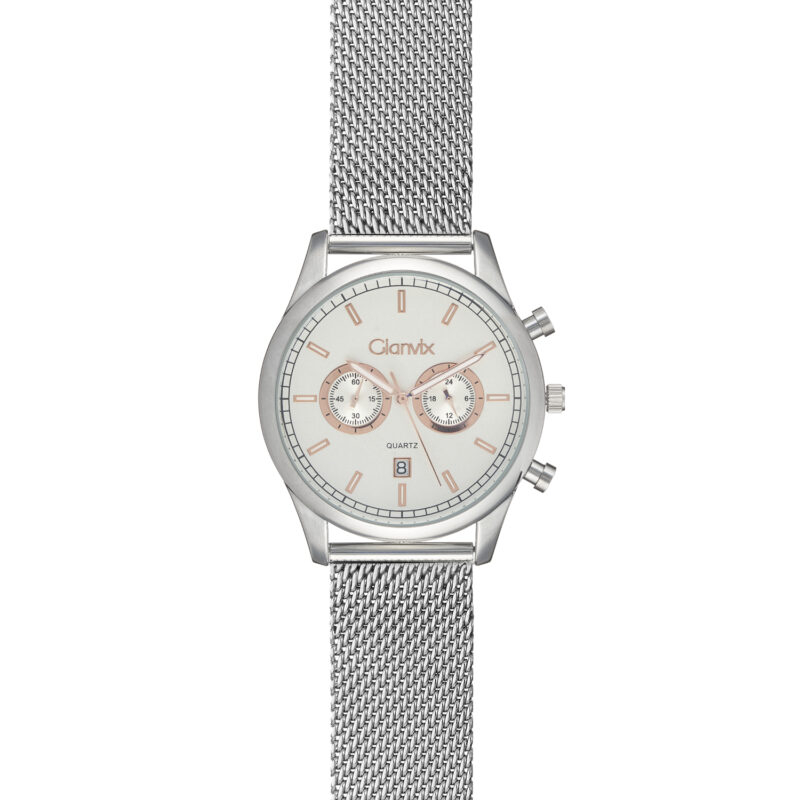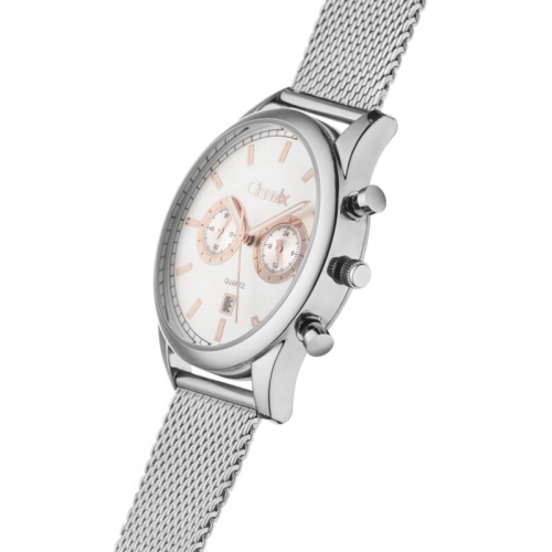 Orologio uomo Gianvix Detroit Gx332-A, movimento al quarzo, cronografo, cassa e cinturino in acciaio, diametro 42 mm, quadrante silver con sfere e indici colore oro rosa e luminescenti, datario, chiusura a scatto, cinturino Milano regolabile, confezione inclusa, 2 anni di garanzia.