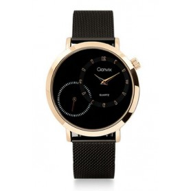 Orologio uomo Gianvix Double GX304-F, movimento al quarzo, Cassa in metallo rosato 42 mm, quadrante nero con due sfere per orario, cinturino in acciaio modello Mano nero brunito con chiusura a scatto scorrevole, lunghezza regolabile, corona a pressione, 2 anni di garanzia.