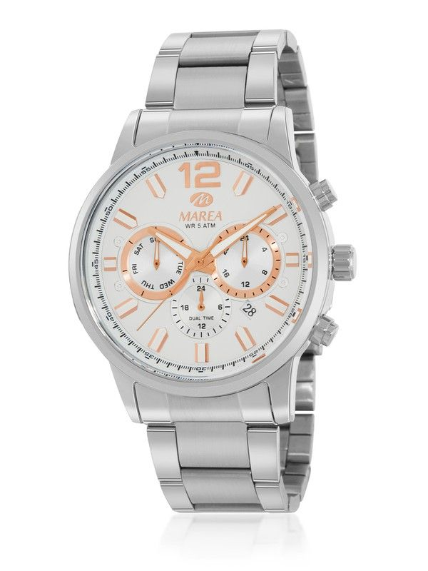 Orologio uomo Marea B54225/1, movimento al quarzo, cinturino e cassa in acciaio, quadrante argento con indici, sfere