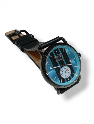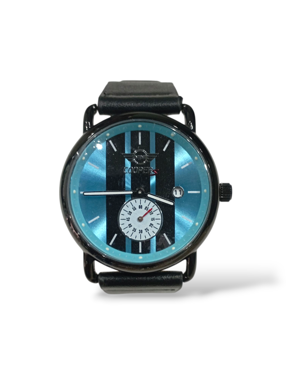 Orologio uomo Mini Cooper, cinturino in cuoio nero e cassa in acciaio nero 38 mm