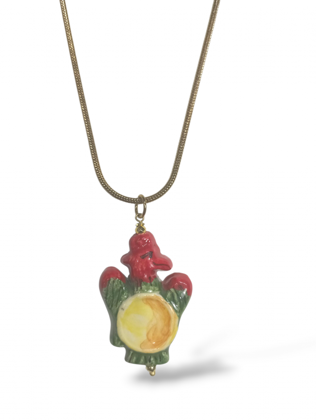 Collana Asso denari Sicilian jewels, collana coda di topo in acciaio Placcato oro 18 kt, pendente a forma di asso di denari in ceramica dipinta a mano, lunghezza collana 60/65 cm regolabile con regolatore a catena incluso, lunghezza ciondolo 5 cm, confezione inclusa.